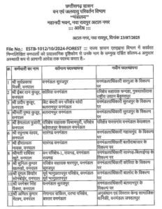 CG TRANSFER NEWS : वन विभाग में बड़ी फेरबदल, कई कर्मचारी इधर से उधर, देखें पूरी लिस्ट